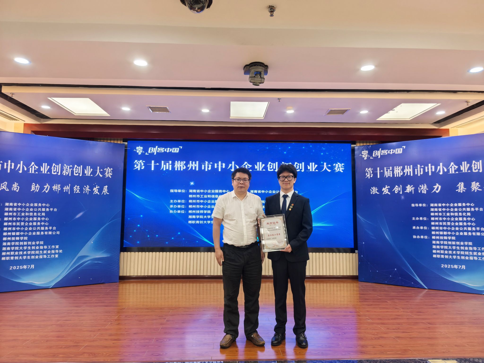 7月11日,由湖南省中小企业服务中心和郴州市工业和信息化局指导,郴州市中小企业服务中心主办的第十届郴州市中小企业创新创业大赛在中心学术报告厅开展,医学部陶晓军副教授指导的“岩出必行”大学生创业团队负责人,湖南师大医学部2022级临床本科生刘熠以《岩出必行---红军草助力乡村振兴》为题,经过激烈的角逐,获得企业组二等奖第二名。